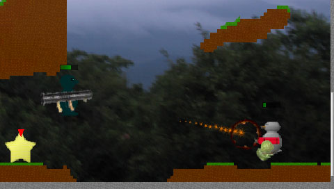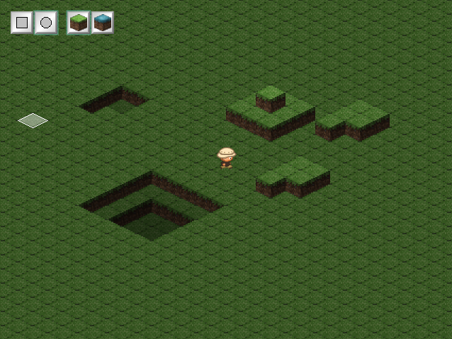 This game is another one of those proof-of-concepts that Bryan started on a whim to see what could be done. You can move around in an infinite map, reshaping the terrain with your mouse as you go. There really isn't much else to do. Use the arrow keys to move, and the spacebar to jump. Let Bryan know if you'd like to see further development on this project!
